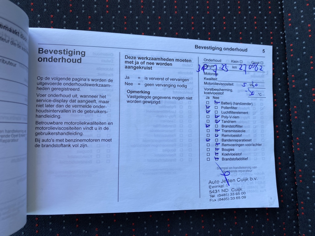 - Onderhoudsboekje aanwezig?
