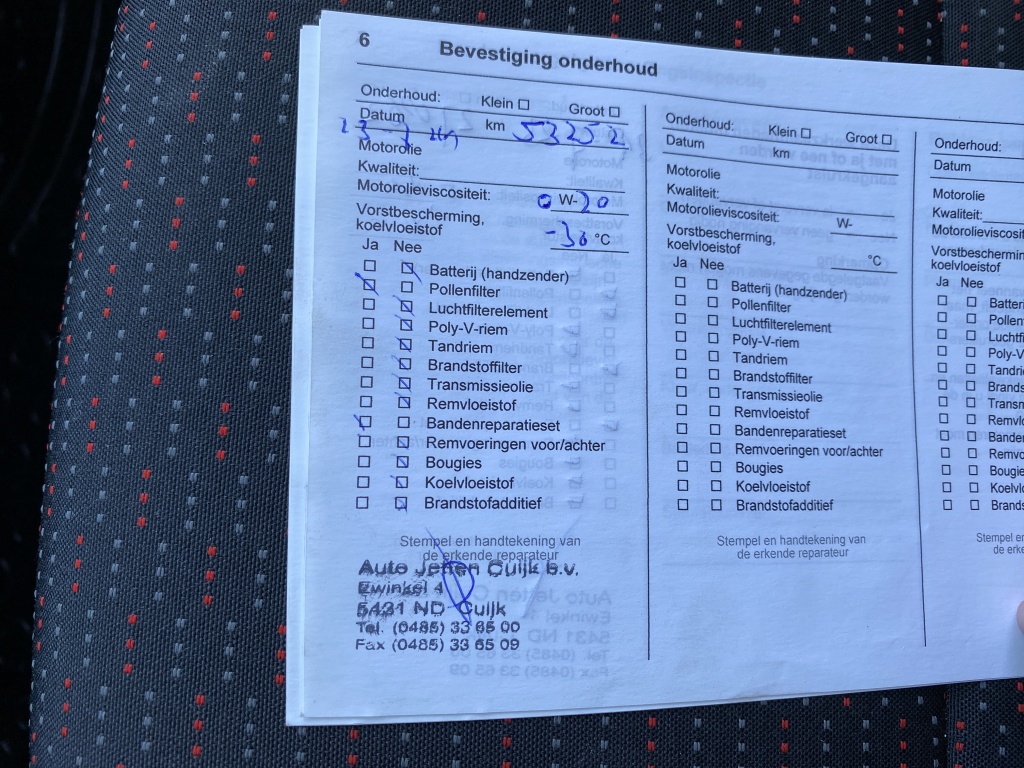 - Onderhoudsboekje aanwezig?